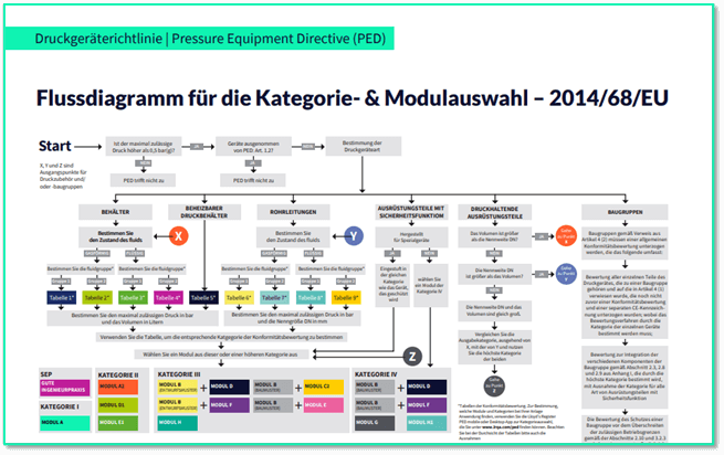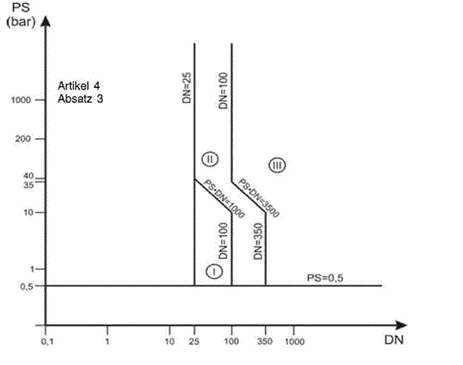 Die finale Einstufung erfolgt anhand der Diagramme in Anhang II der Druckgeräterichtlinie. Es existieren neun Diagramme, abhängig von: