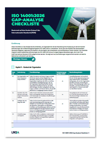 Sie ist eine unverzichtbare Ressource für Audit-Vorbereitung, Compliance-Planung und die kontinuierliche Verbesserung im Einklang mit der überarbeiteten Norm ISO 14001:2026.