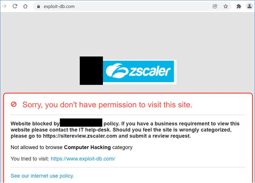 Under normal circumstances, Internet Security and Tunnelling are turned on when the device boots. In LRQA’s example below, before the steps above were followed, the website “exploit-db.com” was blocked: