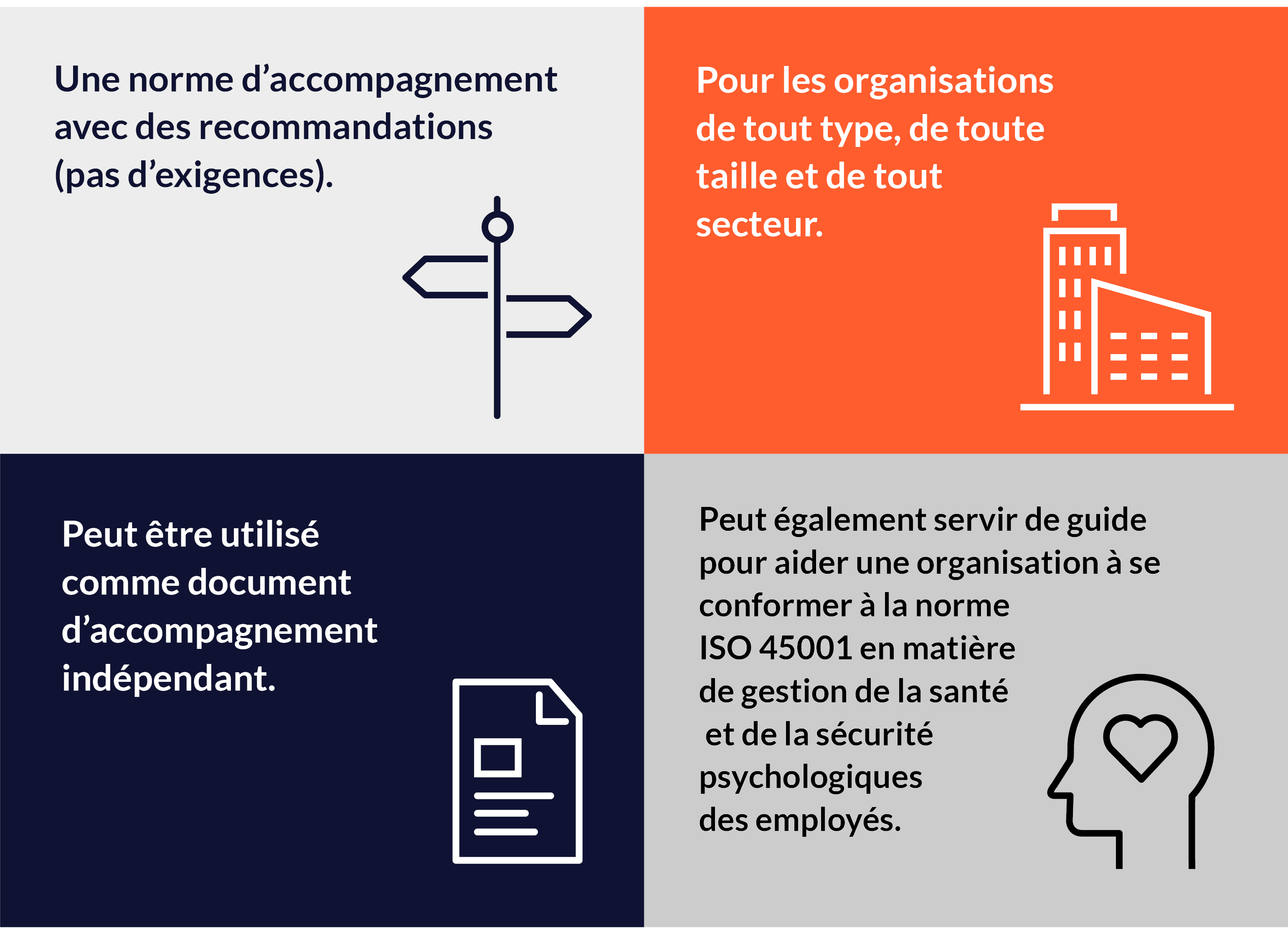 - L'intégration de la santé mentale au travail, en cohérence avec ISO 45003.