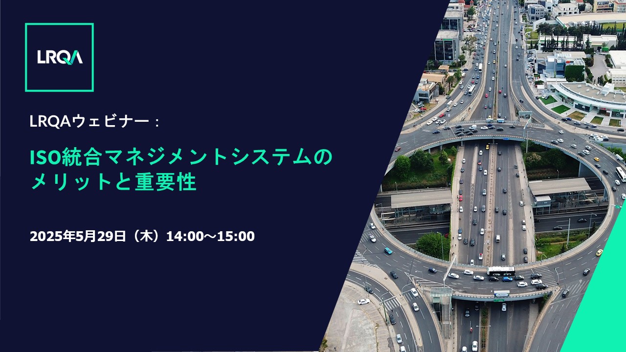 この度、LRQAはISO統合マネジメントシステム(品質、環境、労働安全衛生)のメリットと重要性に特化したウェビナーを開催いたします。品質、環境、労働安全衛生など幅広い分野を対象に、実際の事例を交えてご紹介いたします。