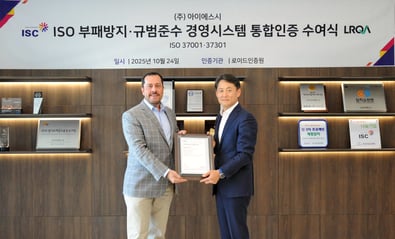 24일, ISC의 ISO 37001 (부패방지경영시스템) & ISO 37301 (규범준수경영시스템) 인증 획득을 축하하는 인증수여식이 진행되었습니다.